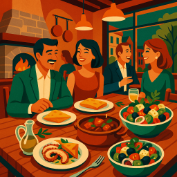 Authentic greek food, the way it's cooked and served in Greece. During my tine there, I felt that I was back in Greece eating in a Greek restaurant. We had the beef with dates, the trout, a cheese pie and finished with greek coffee and kormos and g