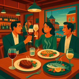The food was mediocre, it was not salted or seasoned at all. The wine was the best part but everything was over priced for what you get. The bathroom is just one room and I had to wait in line, it was dirty when I finally did get in. Not really worth