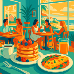 Let's say Peter has a great morning and decides to take his three friends to Cafe Loren Avalon at 6 PM the same day.