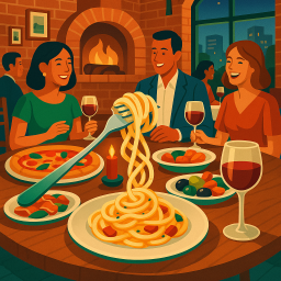 * Peter can now enjoy the dinner with his friends at Carbonara Arlington!