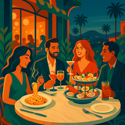 * Peter can now enjoy the dinner with his friends at Chez Mia West Hollywood!