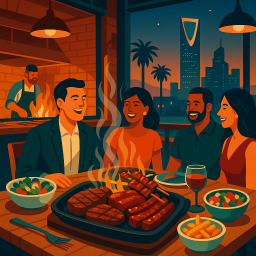 * Peter can now enjoy the dinner with his friends at FireGrill Riyadh!