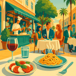 It is an amazing real Italian restaurant in the heart of Beverly Hills! Pasta made inside the cheese wheel is a MUST! The best pasta I have ever tried! Very nice waiters and stuff.