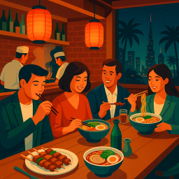 * Peter can now enjoy the dinner with his friends at Kinoya Dubai!