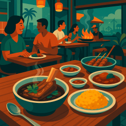 * Peter can now enjoy the dinner with his friends at Konro Karebosi!