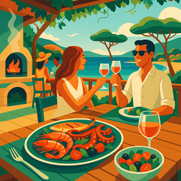 * Peter can now enjoy the dinner with his friends at La sauvageonne Ramatuelle!