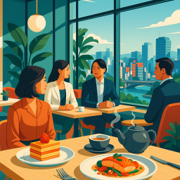 Let's say Peter has a great morning and decides to take his three friends to LE CAFE V Osaka at 6 PM the same day.