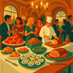 * Peter can now enjoy the dinner with his friends at Le Grand Buffet Saint-Bonnet-de-Mure!