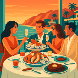 Amazing views of the Pacific Ocean everywhere in the restaurant. Very diverse menu with a little something for everyone. Staff incredibly knowledgeable and hospitable. Food, hot and delicious. Seafood tower options the best in L.A. custom menuโs fo