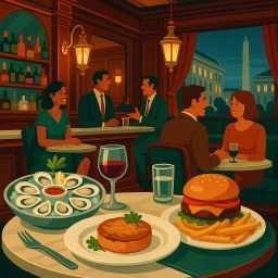 * Peter can now enjoy the dinner with his friends at Old Ebbitt Grill Washington!