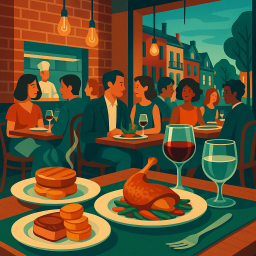 * Peter can now enjoy the dinner with his friends at Restaurant Mastard Montréal!