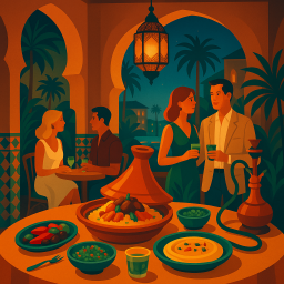 Arrived late for a 1030 seating, and was given dirty looks for wearing khaki dress shorts . After being seated ordered some wine, asked for recommendations (the lamb and chicken tagine were recommended by the server). Food was mediocre at best. The