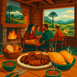 * Peter can now enjoy the dinner with his friends at Restaurant san sebastian Araucanía!