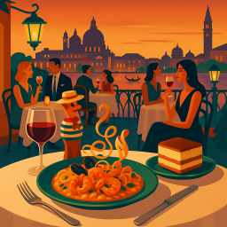 * Peter can now enjoy the dinner with his friends at Restaurant Terrazza Danieli Venezia!
