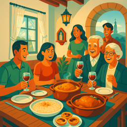 * Peter can now enjoy the dinner with his friends at Restaurante Tia Alice Fátima!