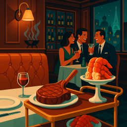 * Peter can now enjoy the dinner with his friends at Rib N Reef Steakhouse Montréal!