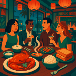 Let's say Peter has a great morning and decides to take his three friends to Straits Restaurant Santa Clara at 6 PM the same day.