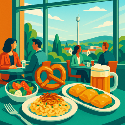 * Peter can now enjoy the dinner with his friends at Stuttgart TV Tower!