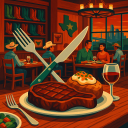 Superior salad bar. The decor is pure Texan. The restaurant can get noisy especially on weekends.