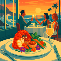 Absolutely fantastic night, well worth the money. The food was superb and the service was nothing short of exceptional. Of course the location canโt be beat, being right in the beach at the waterโs edge. Parking could be a little problematic,
