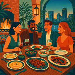 Let's say Peter has a great morning and decides to take his three friends to The Peacock Mediterranean Grill Austin at 6 PM the same day.