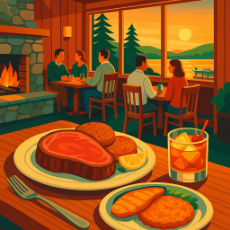 Timmer's is beautiful lakeside resort/ dinner spot. We arrived Friday evening early expecting to wait a bit and we did, but a walk down to the lake and around the grounds passed the time. You will experience a charming "back in time"